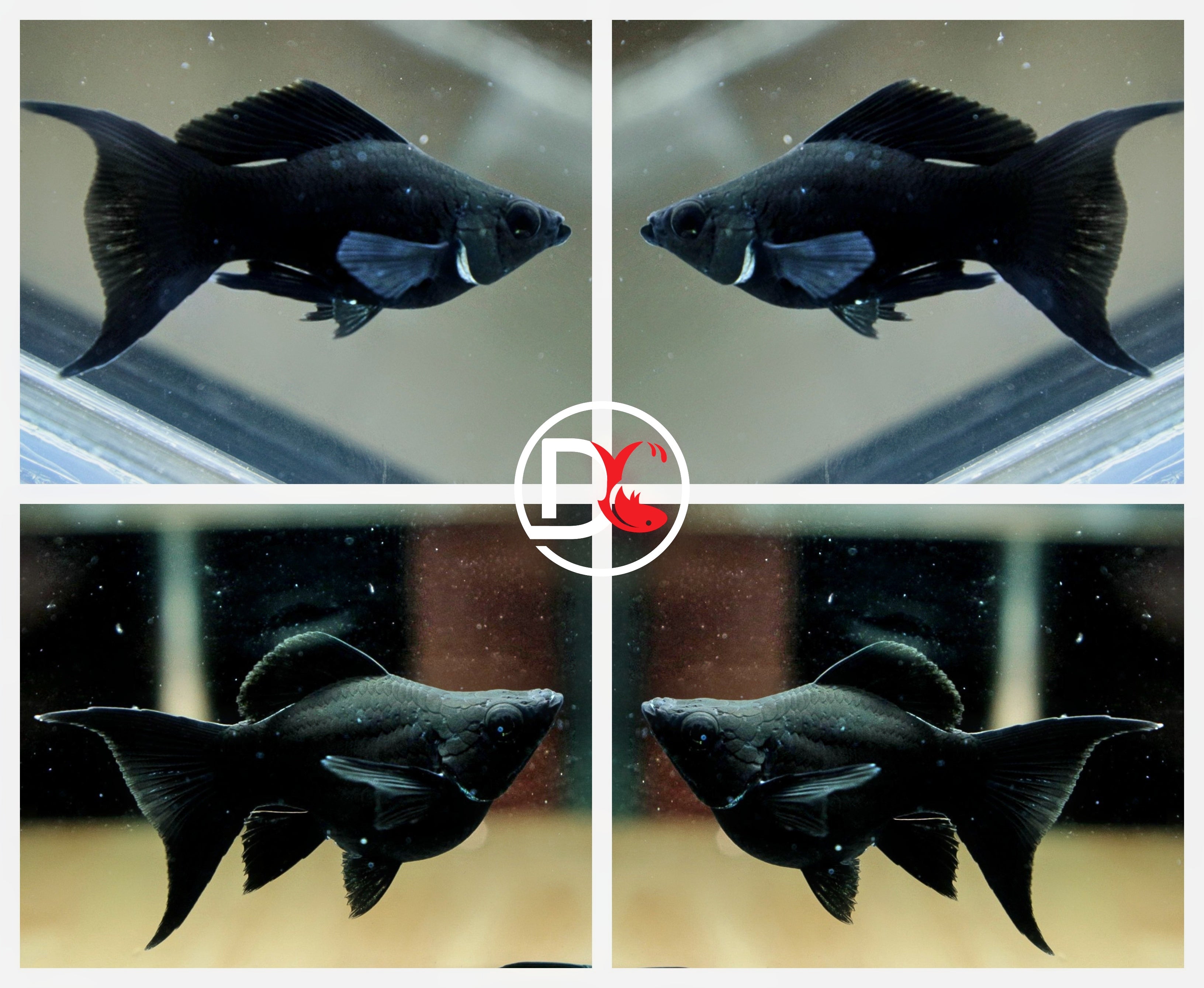 1 Pair - Live Molly Fish - Black Dark Night  Ballon Lyretail