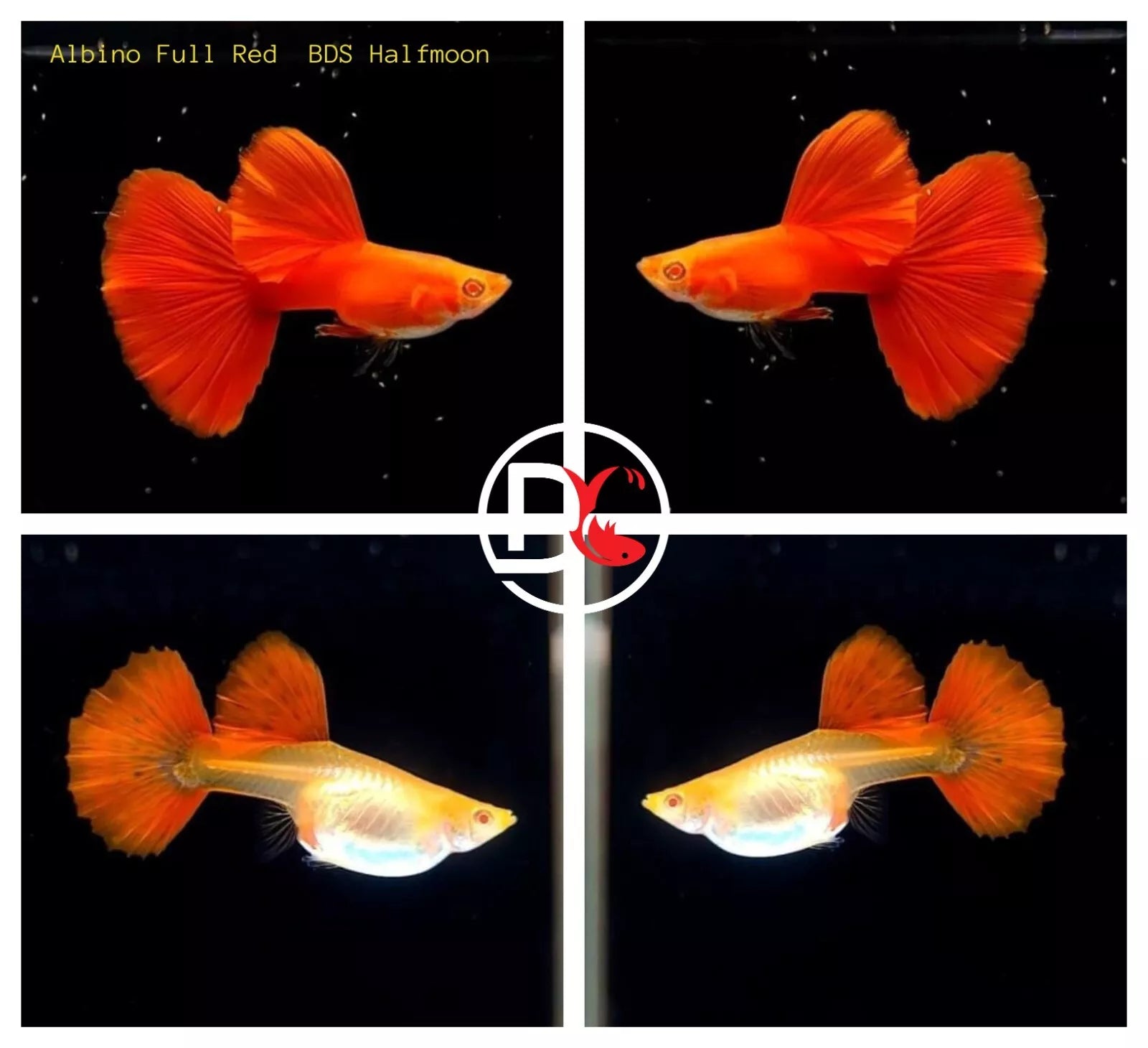 1 Pair - Live Guppy Fish - Albino Full Red Big Dorsal